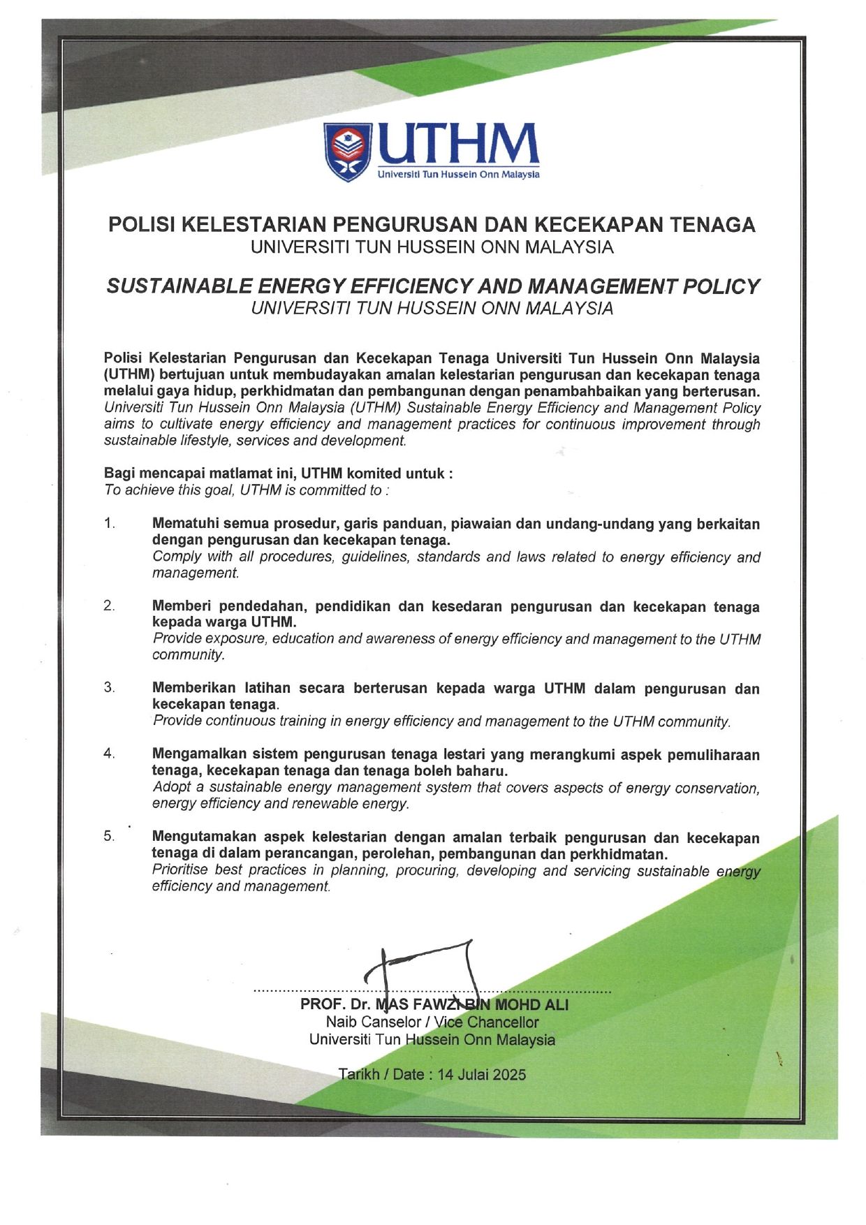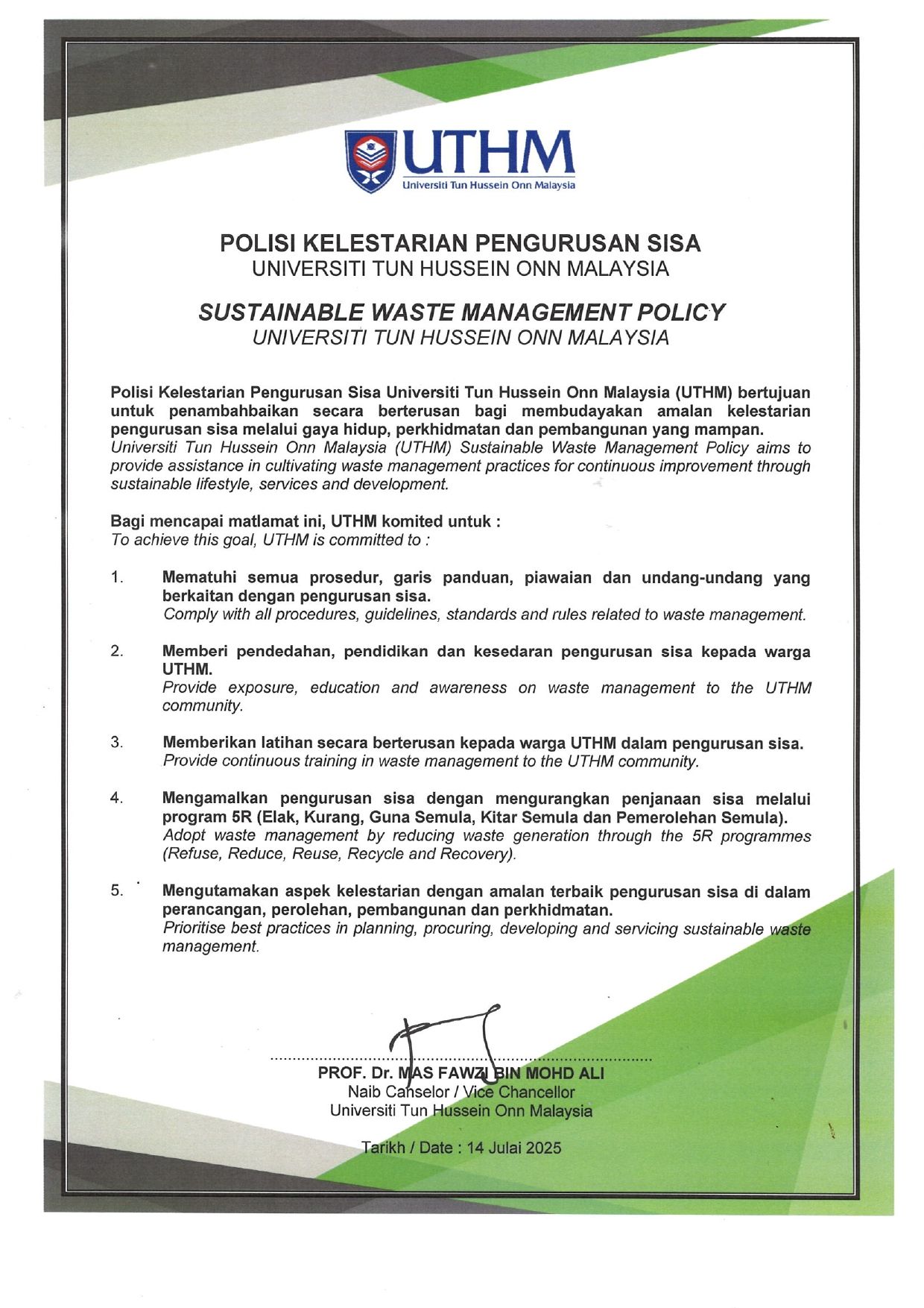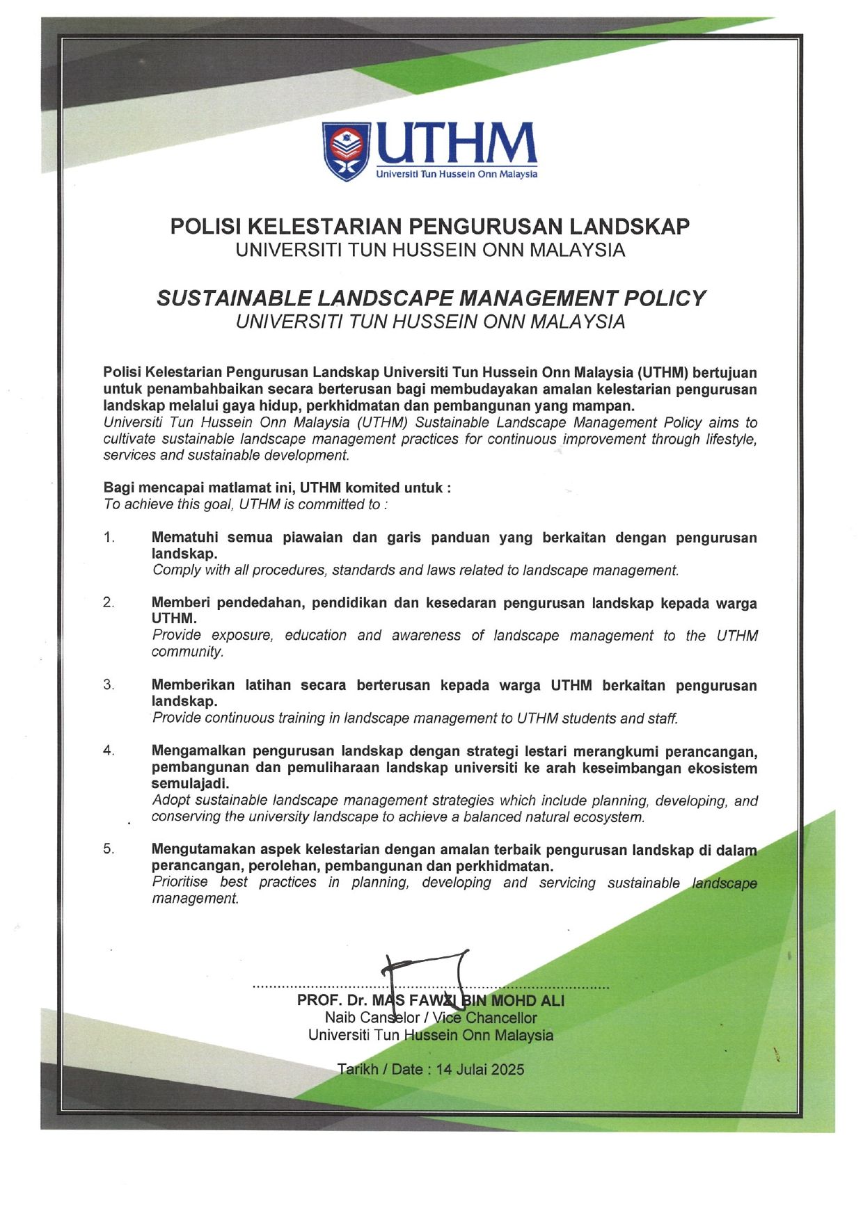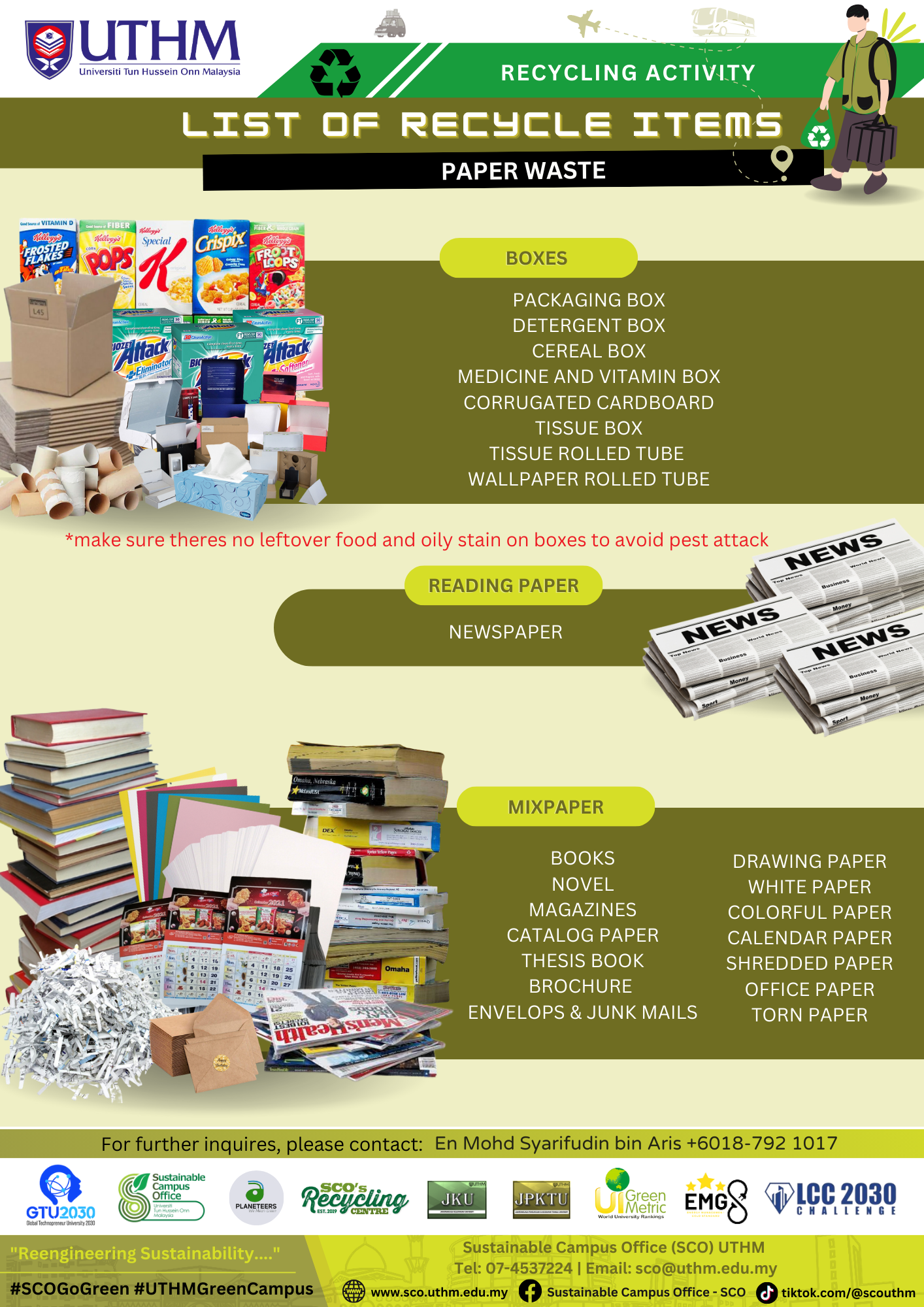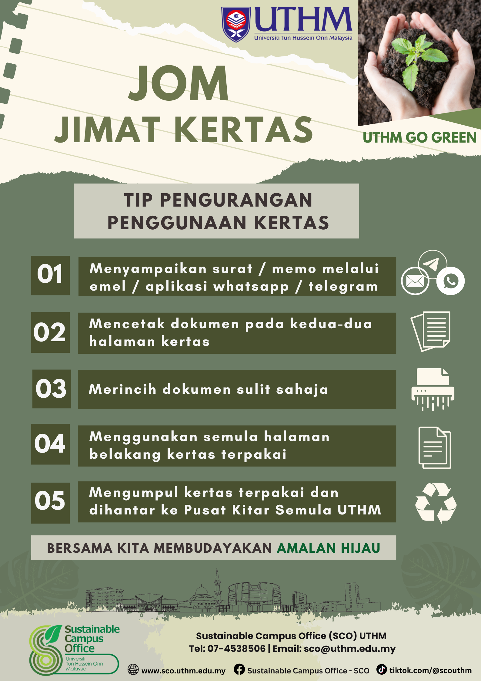 SCO UTHM, atau Pejabat Kampus Lestari (Sustainable Campus Office), adalah sebuah unit di Universiti Tun Hussein Onn Malaysia yang ditubuhkan pada Mei 2010 untuk memimpin dan menyelaras aktiviti kelestarian di universiti itu secara sistematis dan efisien. Unit ini bertujuan untuk mewujudkan ekosistem kampus yang lestari dengan sokongan kakitangan, pelajar, dan rakan industri, serta menyediakan persekitaran kerja yang sihat dan menyeronokkan.